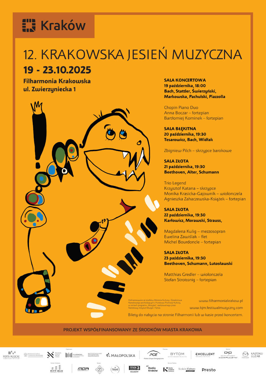 Szanowni Państwo, stowarzyszenie Artystyczne ,,Porta Musicae" oraz Filharmonia im. Karola Szymanowskiego w Krakowie serdecznie zapraszają mieszkańców i mieszkanki Krakowa na 12. Krakowską Jesień Muzyczną!